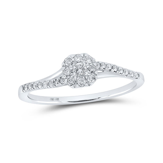 Gold Square Frame Cluster Ring 1/8 Cttw Round Natural Diamond Womens