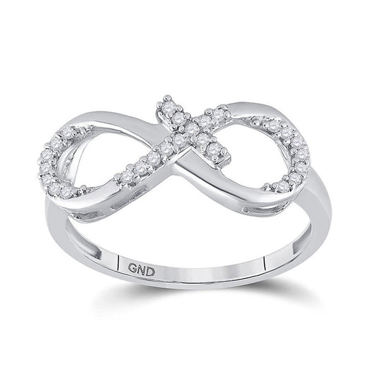 Gold Cross Infinity Band Ring 1/10 Cttw Round Natural Diamond Womens