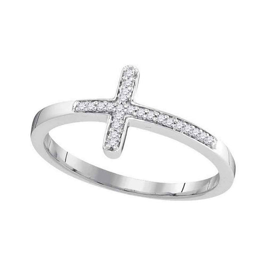 Gold Cross Ring 1/10 Cttw Round Natural Diamond Womens