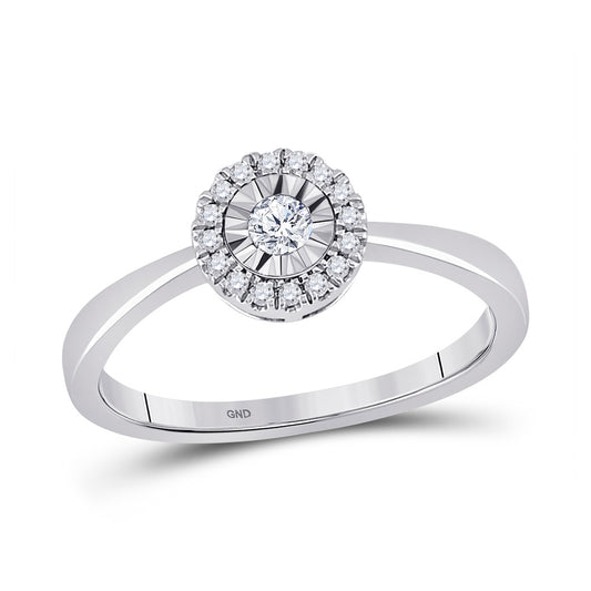 Gold Halo Solitaire Promise Ring 1/6 Cttw Round Natural Diamond Womens