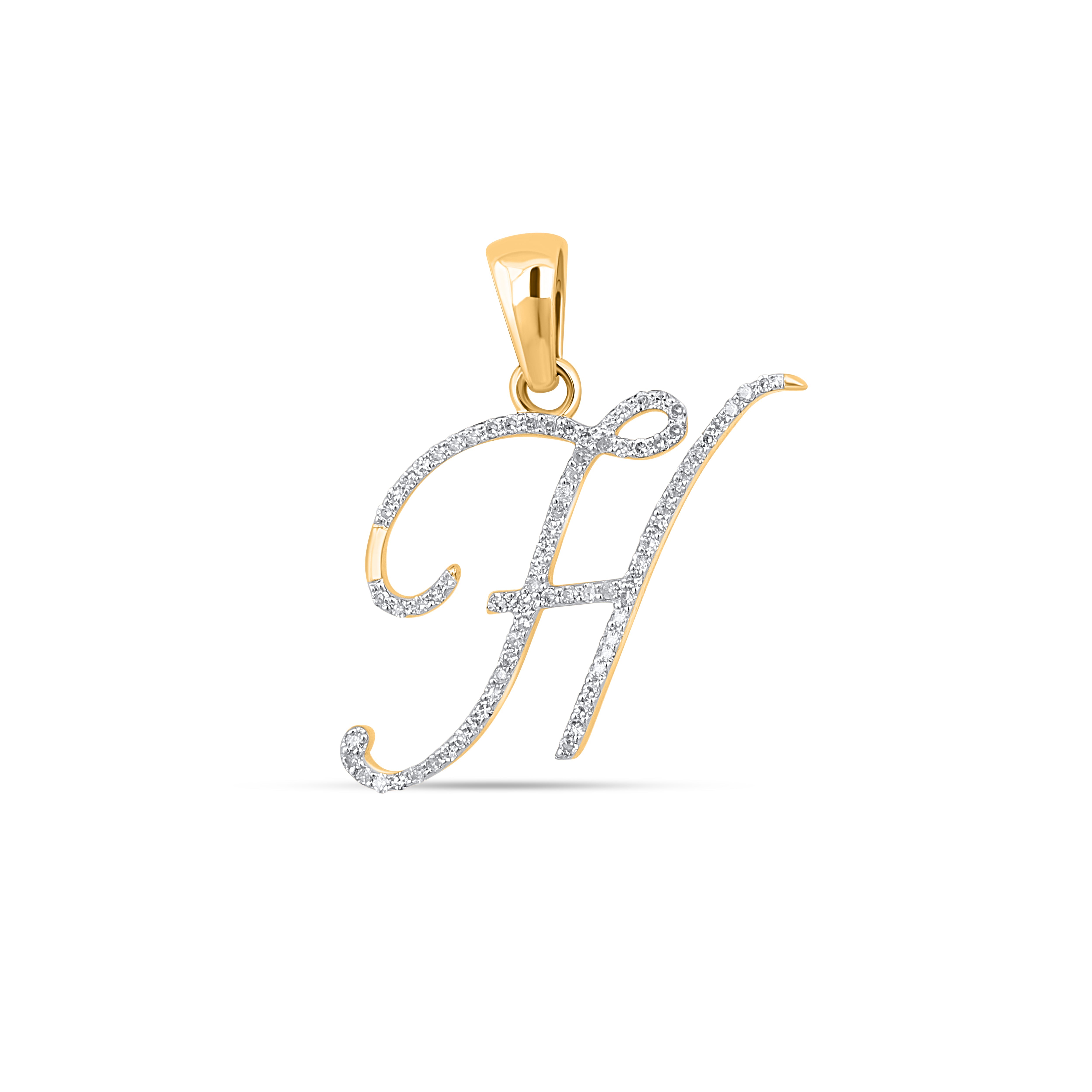 10K Yellow Gold Round Diamond H Letter Initial Pendant 1/10 Cttw