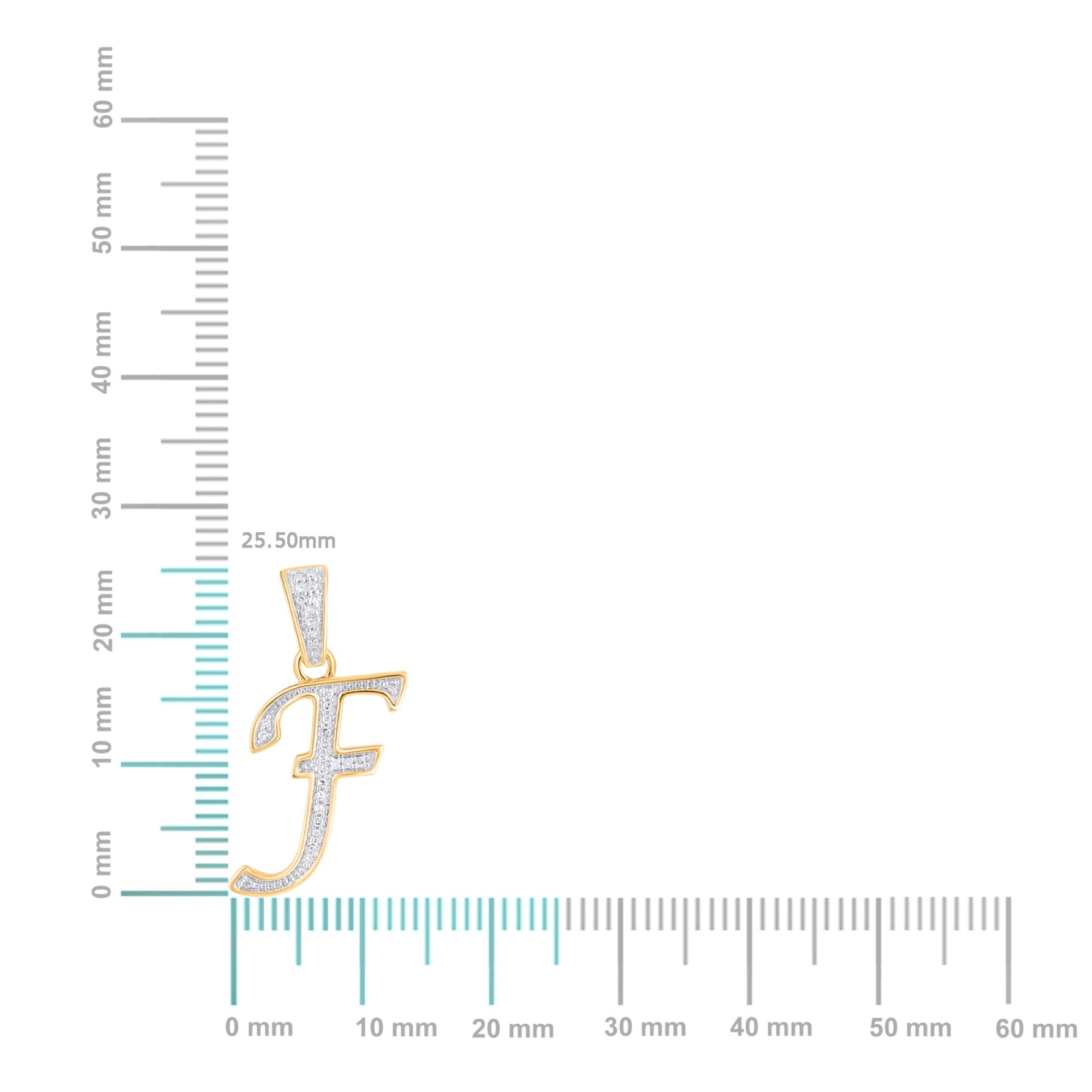10K Yellow Gold Round Diamond F Letter Initial Pendant 1/10 Cttw