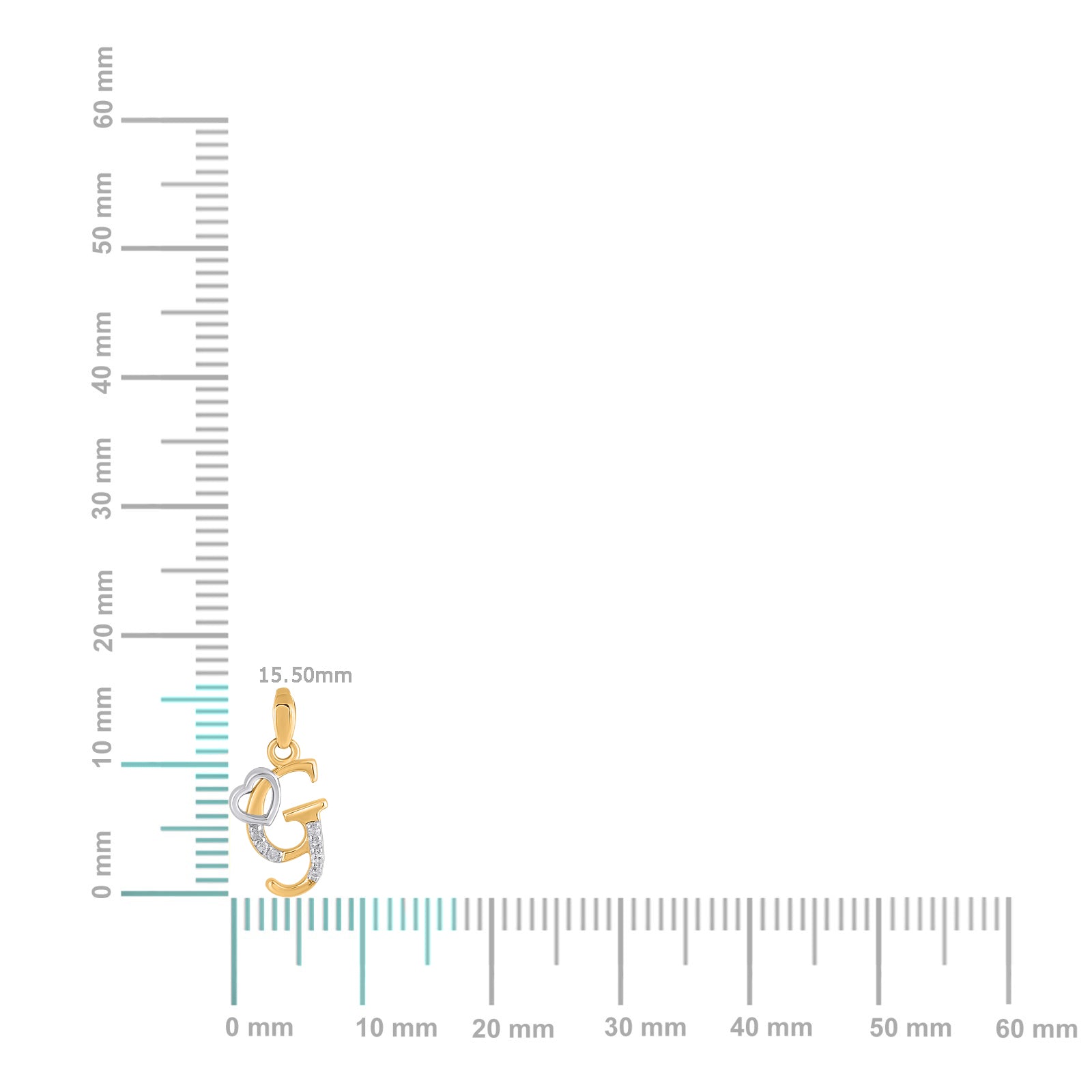 10K Yellow Gold Round Diamond G Letter Initial With Heart Pendant 1/10 Cttw