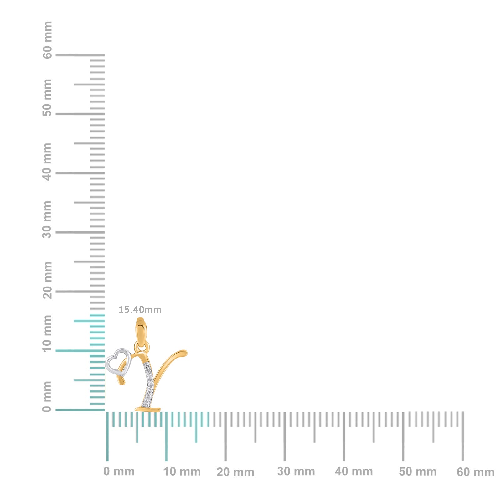 10K Yellow Gold Round Diamond Y Letter Initial With Heart Pendant 1/10 Cttw