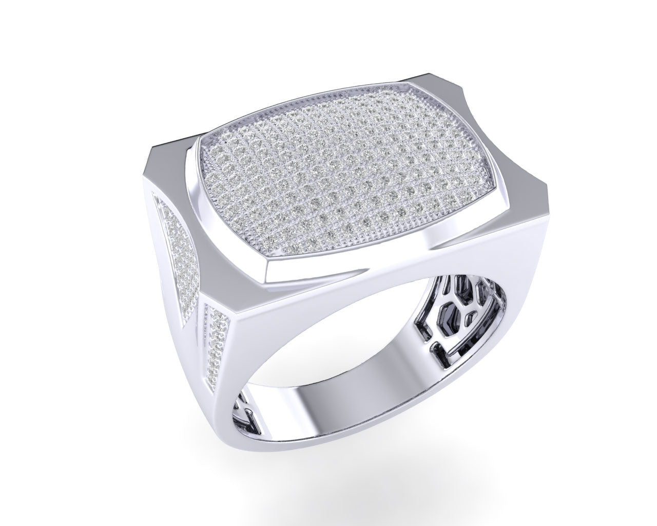 Sterling Silver Round Diamond Square Designer SZ 10 Mens Ring 3/4 Cttw