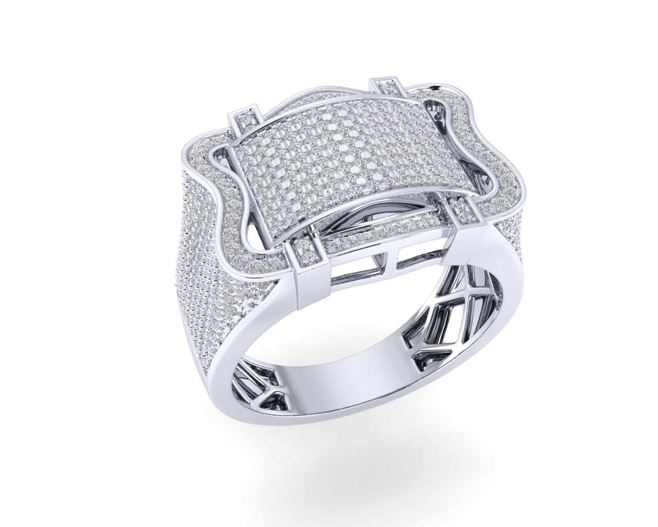 Redefine luxury with this curved plate sterling silver ring, featuring a striking wave-top design fully encrusted with hand-set diamonds. Its...